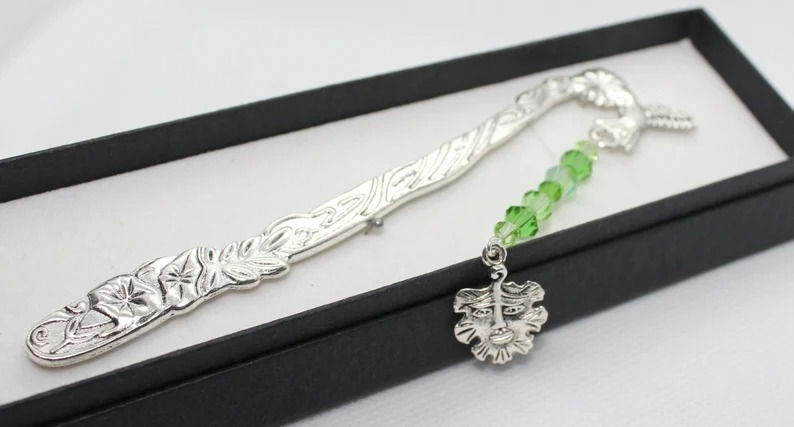 Green Man -Hummingbird design Tibetan Silver bookmark